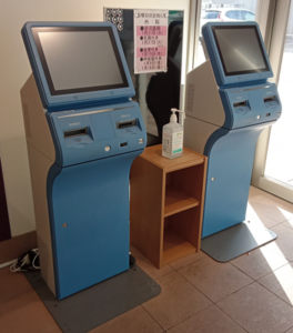 再来受付機で受付(正面玄関入り口に設置)