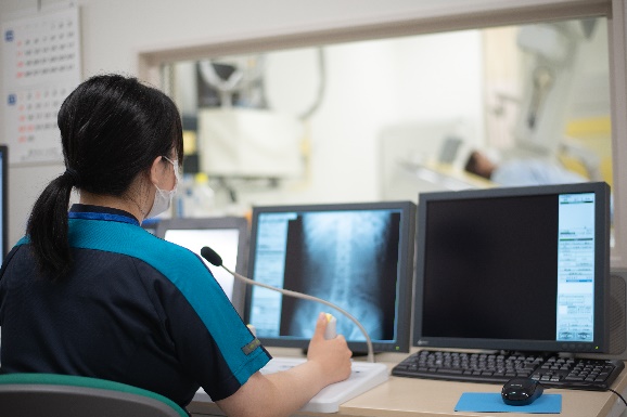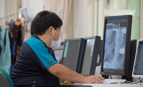 X線TV装置でリアルタイムに身体の中を透過して身体の中の動きを診断します